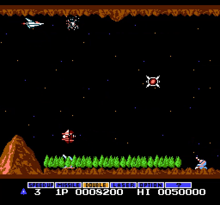 Alpha Mission is a one-player scrolling shooter game in its segregation of air-to-air and air-to-ground weapons. Missiles are used to destroy ground enemies, while laser-like weapons are used for aerial opponents.