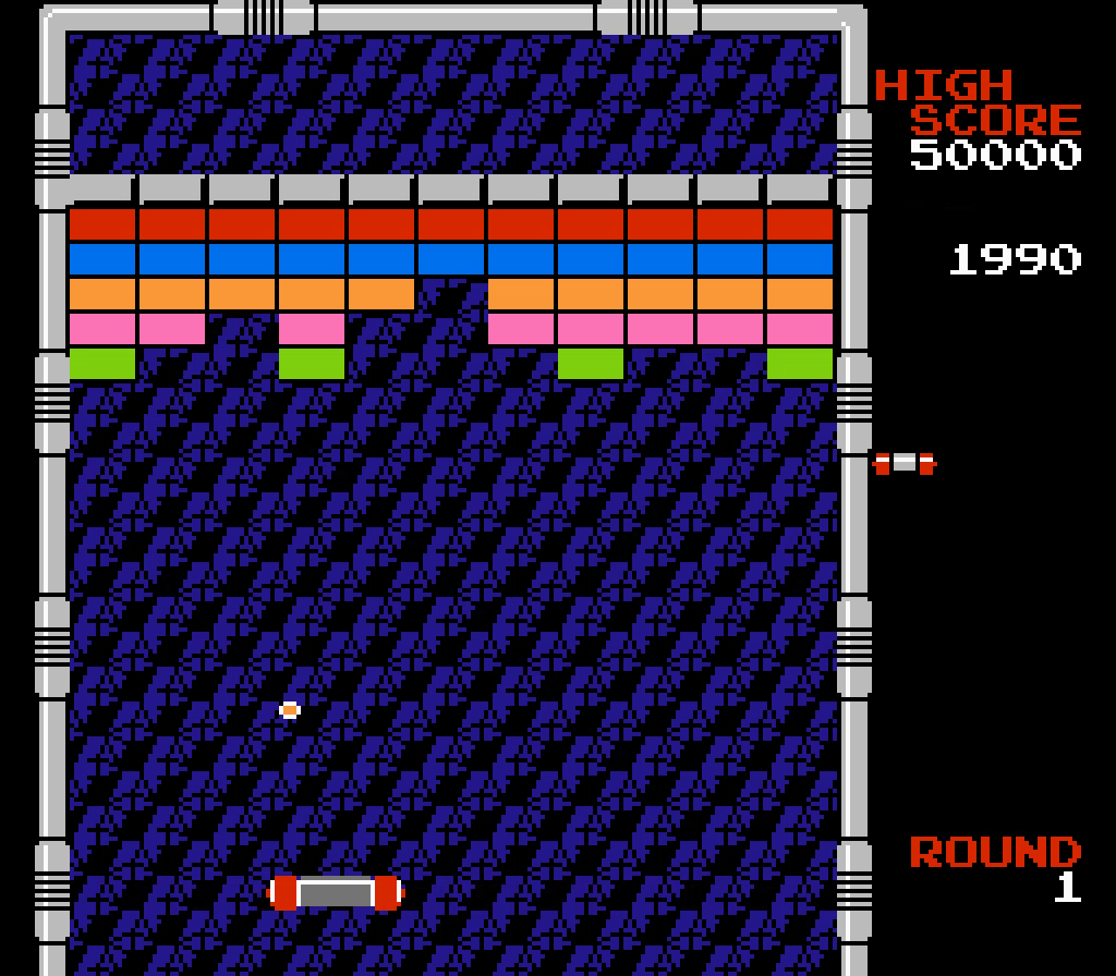 The player controls the “Vaus”, a space vessel that acts as the game’s “paddle” which prevents a ball from falling from the playing field, and attempts to bounce the ball against a number of bricks. The ball striking a brick causes the brick to disappear.